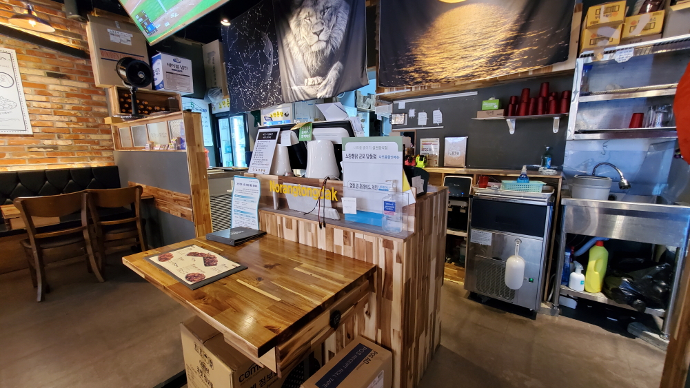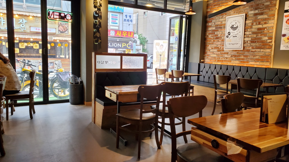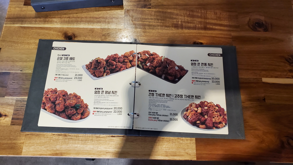 확실히 치킨집은 조금 일은 시간에 가니까 배달 주문만 많고 매장에는 사람들이 별로 없더군요. 편안하게 미리 주문한 치킨을 옆에 테이블에 앉아서 기다렸습니다.