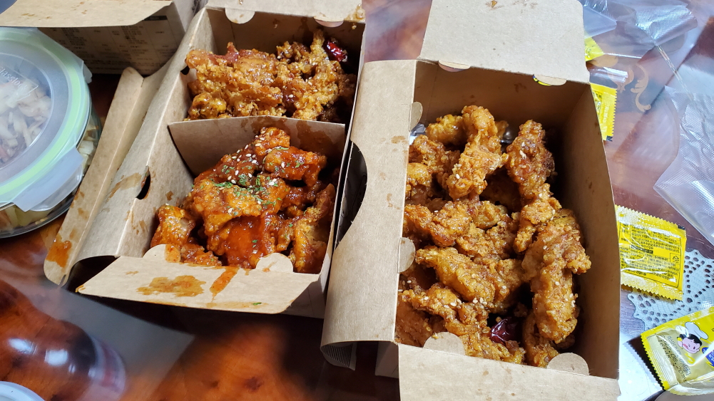 아무래도 치킨 리뷰 같은 경우는 맛이나 가격이 가장 궁금하죠? 가격은 보통적인 프랜차이즈 치킨 가격이 맞고요. 치킨은 맛있습니다. 저는 개인적으로 깐풍치킨이 정말로 맛있더군요. 후라이드도 맛있기는 했지만 저는 깐풍 치킨이 더 맛있었어요. 부모님이나 아내 같은 경우는 오히려 후라이드 치킨이 더 맛있다고 하더군요. 오늘 저녁에 야식으로 치킨이 어떠신가요? 강추합니다.