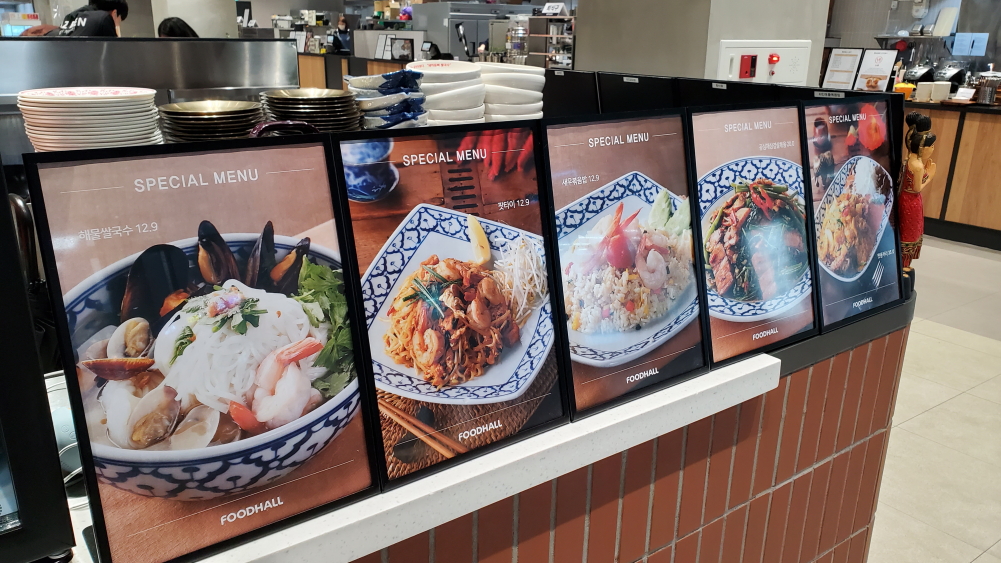 확실히 푸드홀이라서 그런지 대부분이 이렇게 개방된 자리들이 많았어요. 아무래도 거의 패스트푸드 음식점 처럼 운영하니까 이렇게 구성은 당연하겠지만요.