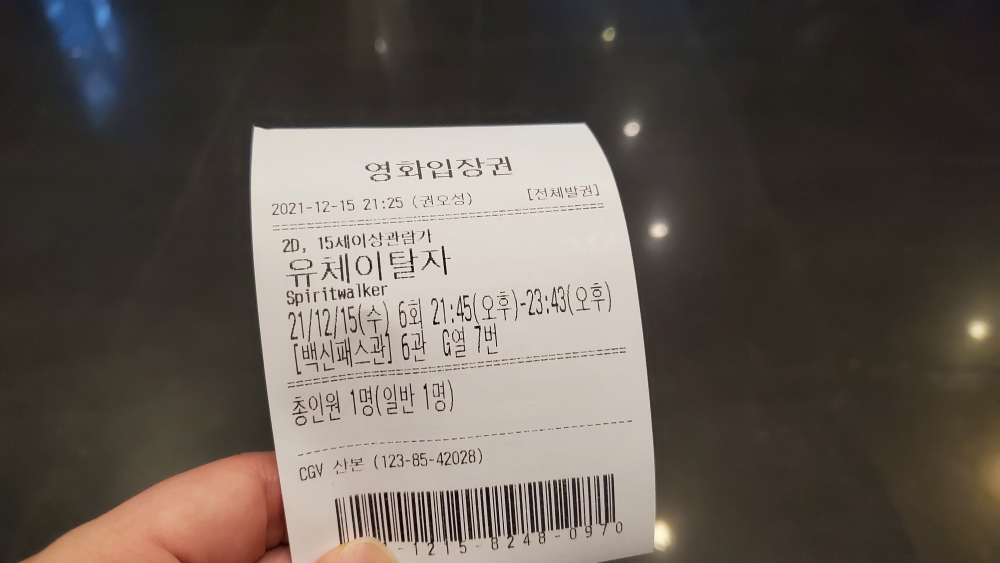 저는 CGV에서 제공을 하는 백신패스관에서 관람을 했습니다. 물론 9시 45분 영화를 관람을 했는데요. 아무래도 낮이나 오후에 관람을 하는 거보다는 사람이 적다고 생각해서 야간에 관람을 했습니다.
