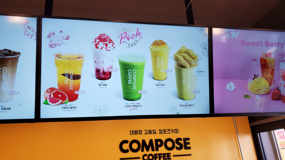 동네에 COMPOSE COFFEE 매장이 생겼네요. 맛도 궁금하고 가격도 궁금해서 한번 방문해봤습니다. COMPOSE COFFEE 군포당동점인데요. 아마도 전국적으로 매장이 있는 거 같더군요. COMPOSE COFFEE 군포당동점은 오픈한지는 한 달? 조금 넘은 거 같습니다.